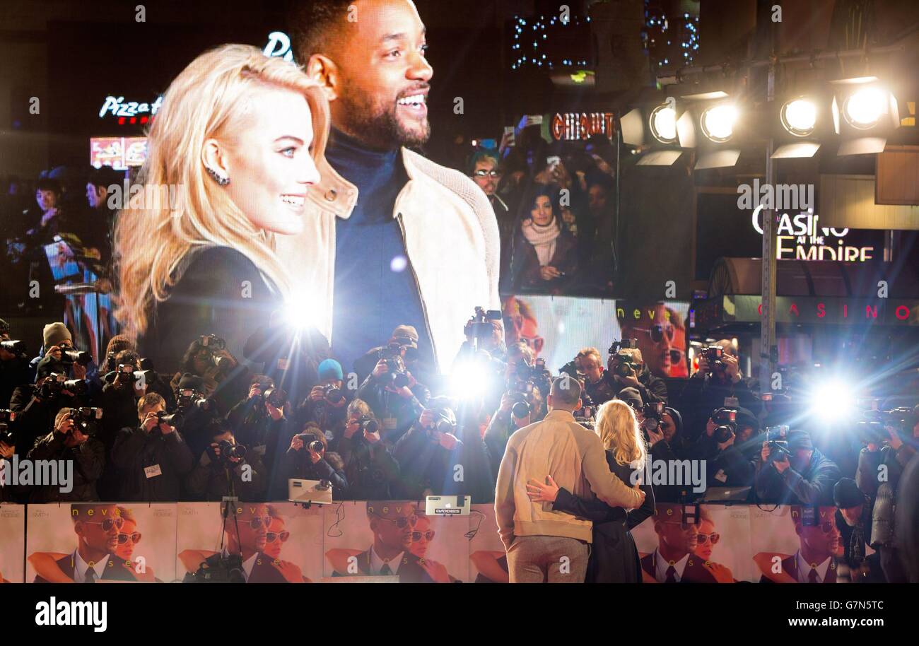 Margot Robbie And Will Smith Attending The Gala Screening Of Focus At Vue West End Leicester Square London Stock Photo Alamy